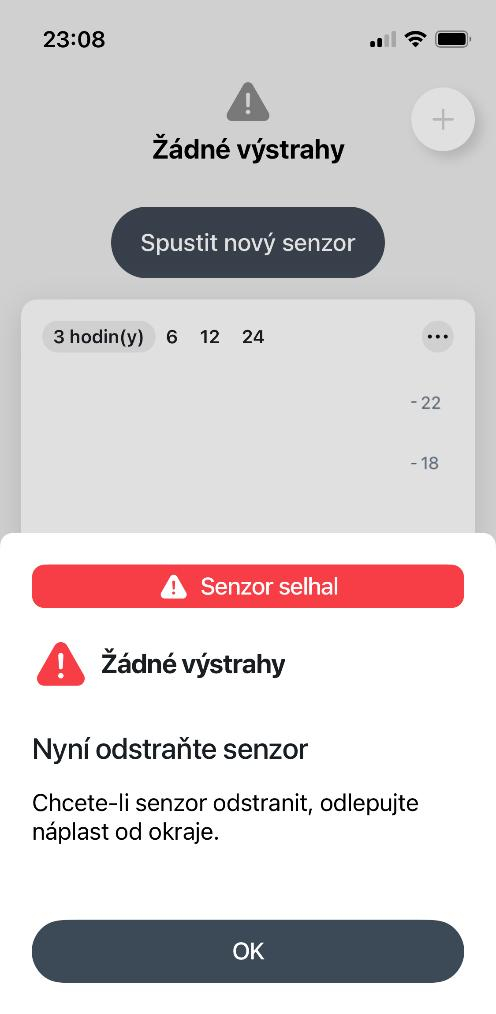 Vzory fotografií z aplikácie / inzulínovej pumpy – predčasné ukončenie relácie senzora